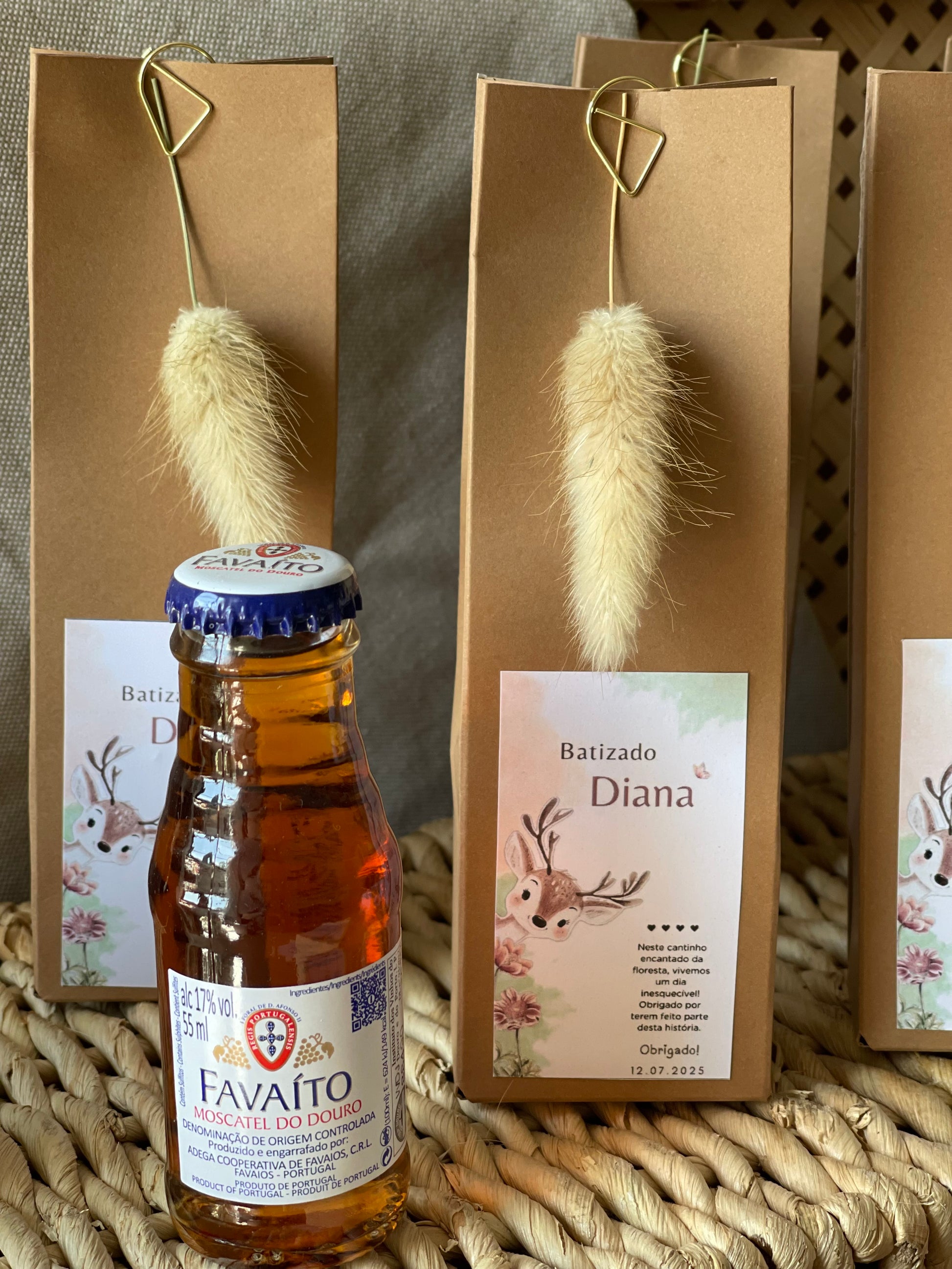 Etiqueta personalizada, podendo ser utilizado o logótipo que já possui (por exemplo, que foi utilizado no convite). Após realizar a sua compra deverá nos enviar por email (encomendas.focoeventos@gmail.com) ou WhatsApp (+351 914373505), conforme informações que pretendo utilizar na etiqueta. Antes da impressão final será enviada uma maquete para aprovação.